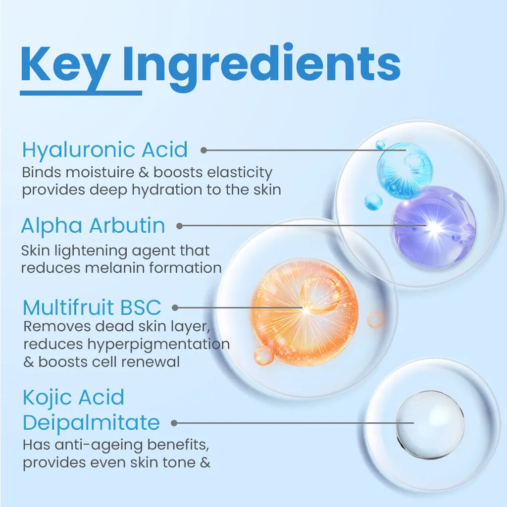 Brightens Skin: Kojic acid has a brightening effect on the skin. It helps to remove dead skin cells, which can make the skin look dull and tired. By promoting cell turnover, kojic acid can help to reveal brighter, more radiant skin.