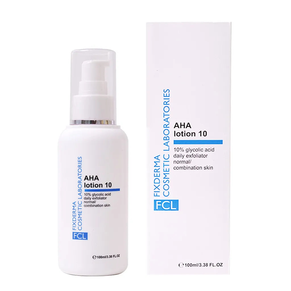 FCL AHA Lotion 10 is an advanced body lotion that exfoliates, nourishes, and replenishes dry, dull and scaly skin. Powered with 10% Glycolic acid, this lightweight lotion boosts collagen while promoting all-day hydration for soft, smooth, and youthful skin tone.
