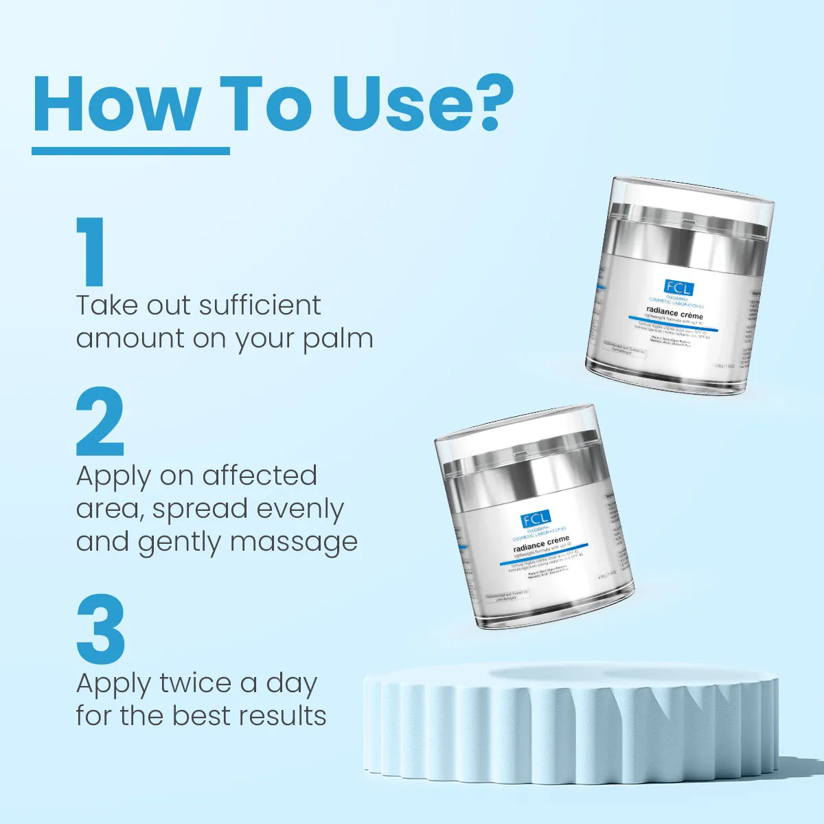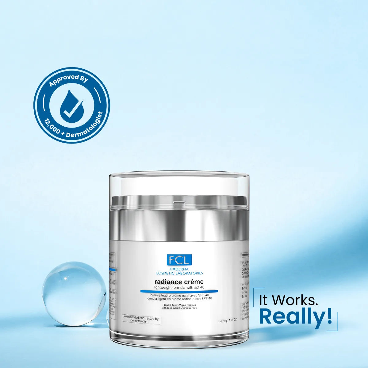 A lot of people do not like to layer too many products in the morning due to time constraints and to them I suggest the radiance crème. We all need a day cream that can prevent our skin from environmental stressors and at the same time strengthen the skin. This light weight formula with SPF 40 is an effective blend of protective and healing ingredients . Uvinal A plus and Plant c stem (vigna radiata) protect against the damaging effects of sun exposure to prevent dark spots. Mandelic acid is a exfoliator and cybright g is a antioxidant, they remove dead cells from the surface of the skin and help achieve an uniform skin tone. Argireline peptide successfully helps in reducing the appearance of fine lines and wrinkles. It is brilliant how one formulation can provide numerous benefits!!