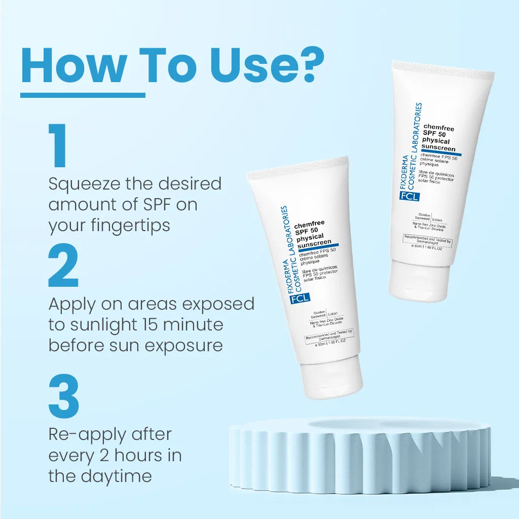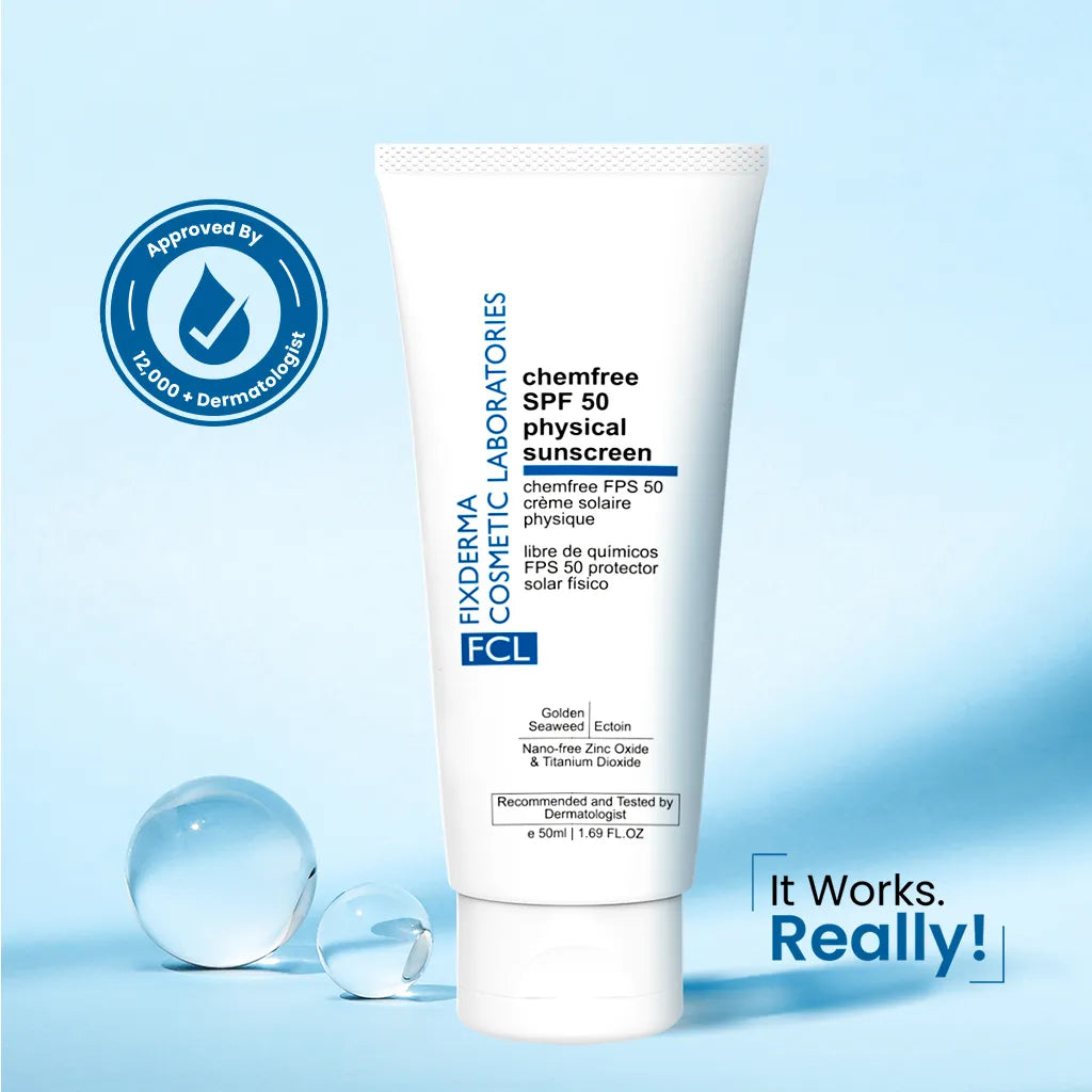 That's where FCL Chemfree SPF 50 stands out. It contains physical sun blockers and is nano-free, ensuring it provides effective sun protection without leaving a whitening effect on the skin. Its smooth and uniform texture enhances the application experience. Additionally, it is suitable for all skin types, including sensitive and acne-prone skin.