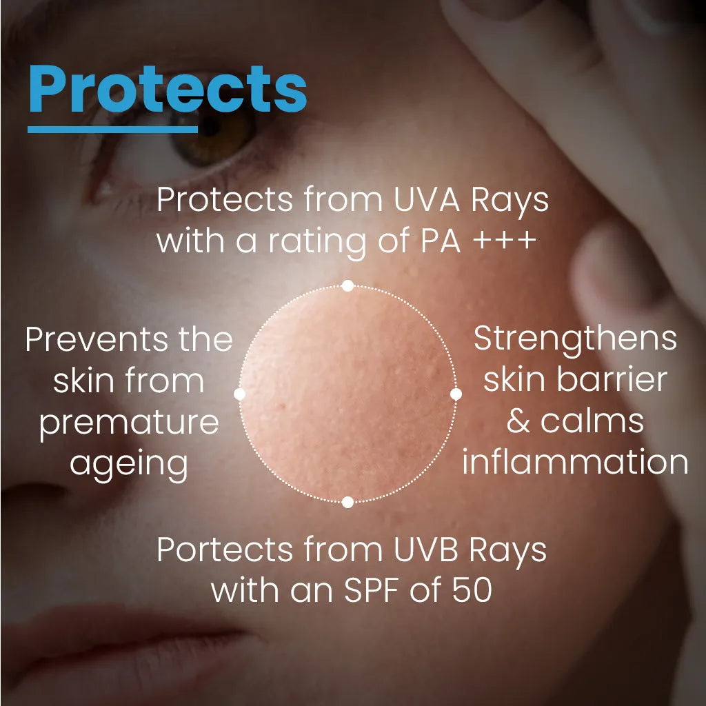 A physical sunscreen that offers broad-spectrum protection against both UVA & UVB rays. Containing the non-nano form of physical blockers like zinc oxide and titanium dioxide, it is a light weight, non-whitening formulation which spreads quickly on the skin for immediate protection.