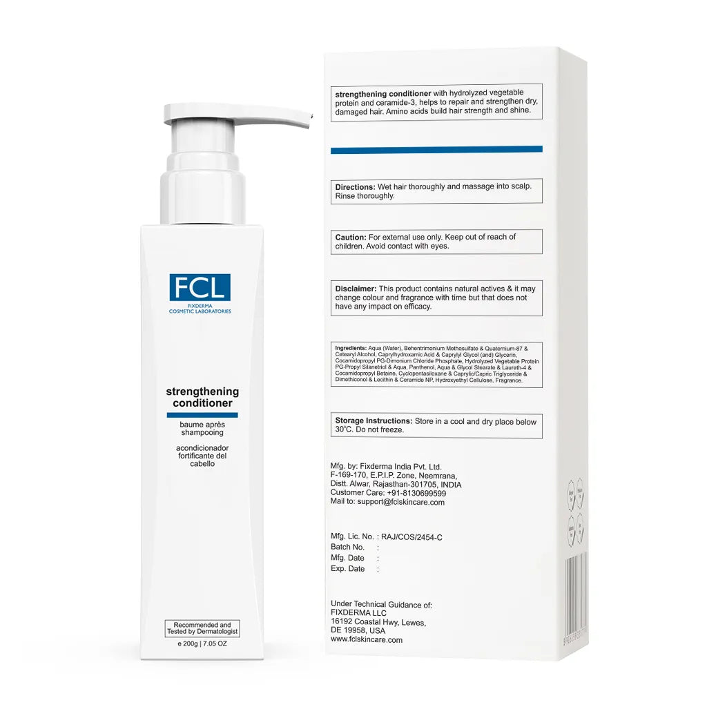 FCL Strengthening conditioner works by smoothening down your hair to make them look silky and shiny. Crodazoquat MCC utilizes a hybrid technology that has been optimized to provide excellent conditioning on a broad range of hair types. While using a shampoo opens your hair cuticles, a conditioner seals it back by locking in the useful nutrients. This strengthens your hair shaft, prevents breakages, split ends, and hair loss. Hair conditioners are moisturisers for your hair that keep it hydrated and protected against probable damage. It is ideal for those looking for healthier and more manageable hair.