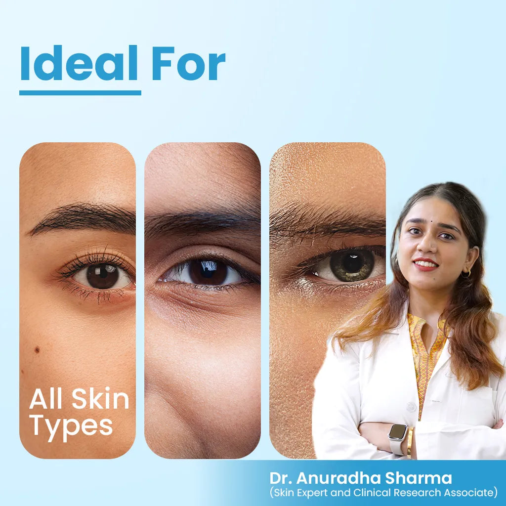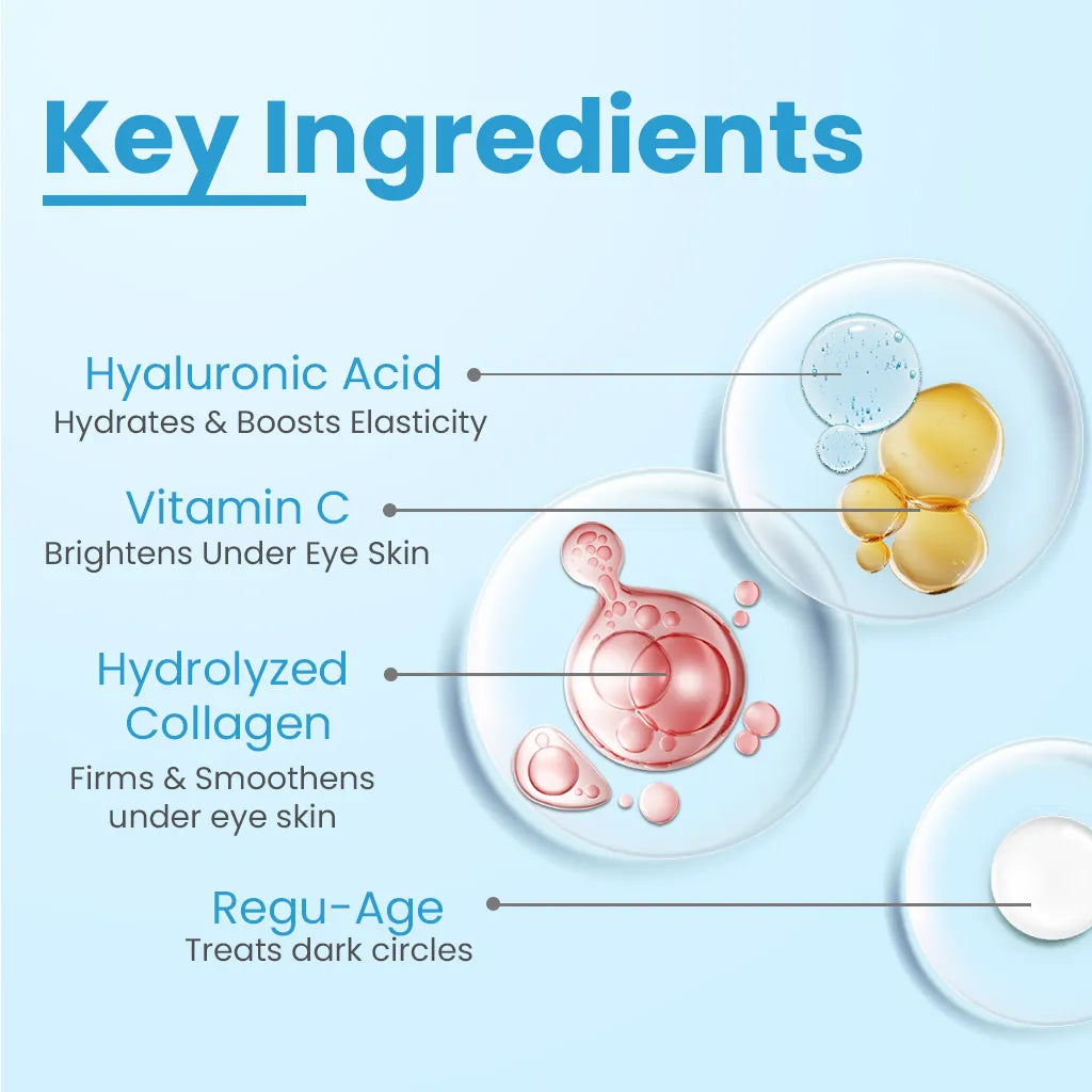 Hyaluronic Acid- Delicate skin around the eyes and visibly reduces the look of dark circles and eye puffiness.